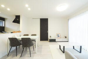現代的なスタイリッシュさを持ちながら、落ち着きと安らぎを感じられる空間が特徴です。