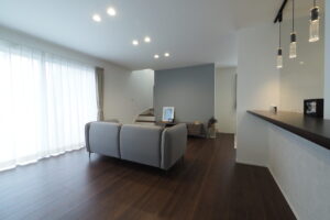 下の画像、希望が丘モデルハウスではグレートーンをベースに木のぬくもりを